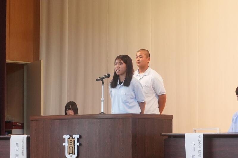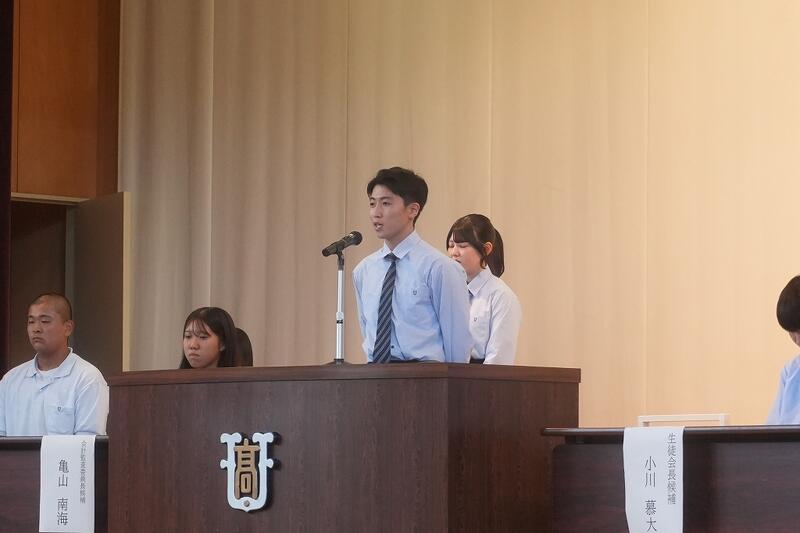 生徒会長には2Cの中島 充裕さん、会計監査委員長には2Bの亀山 南海さんが選出されました。